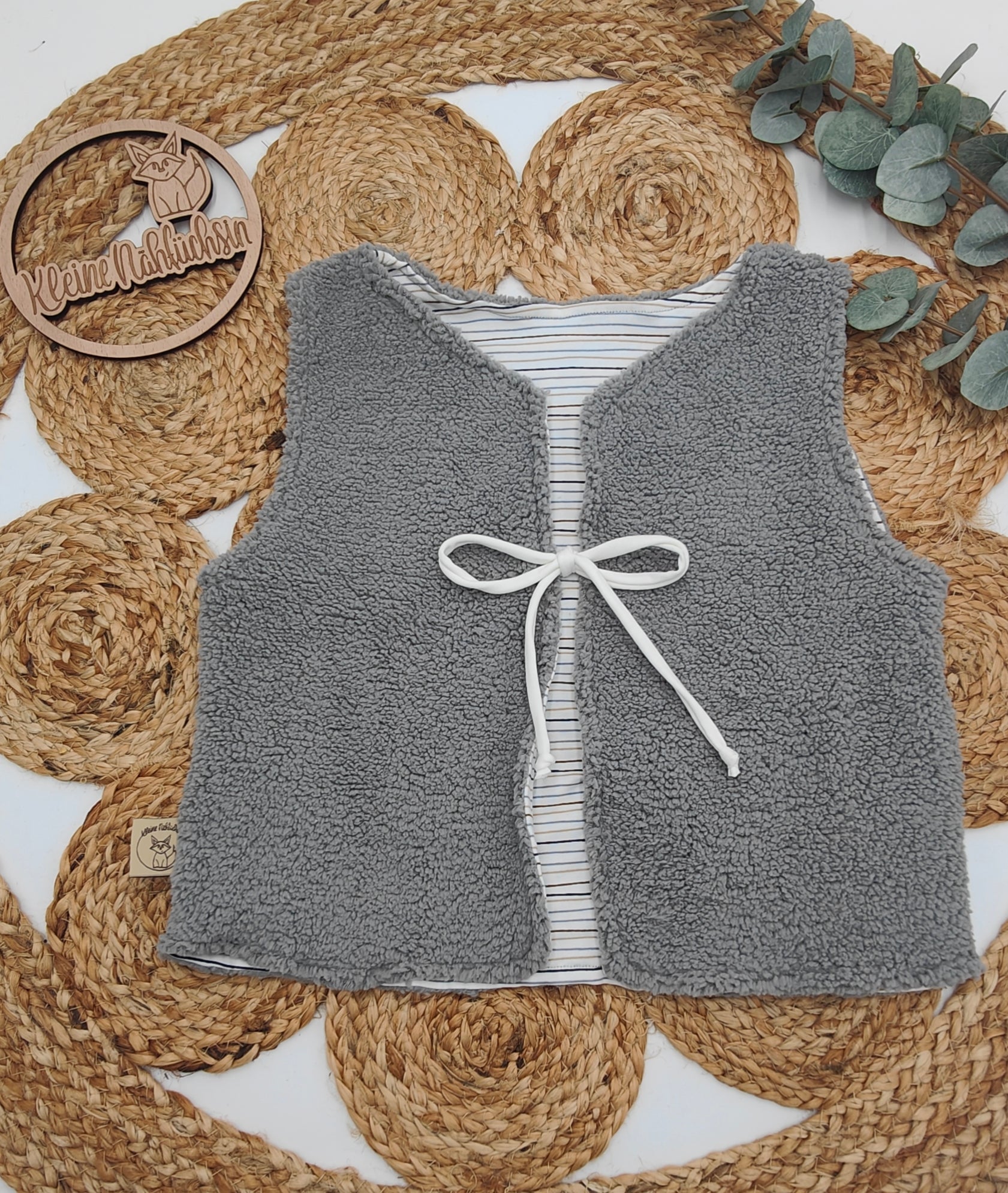• Lade das Bild in den Galerie-Viewer, Gr. 110/116 Weste Plüsch Grau (fällt groß aus)