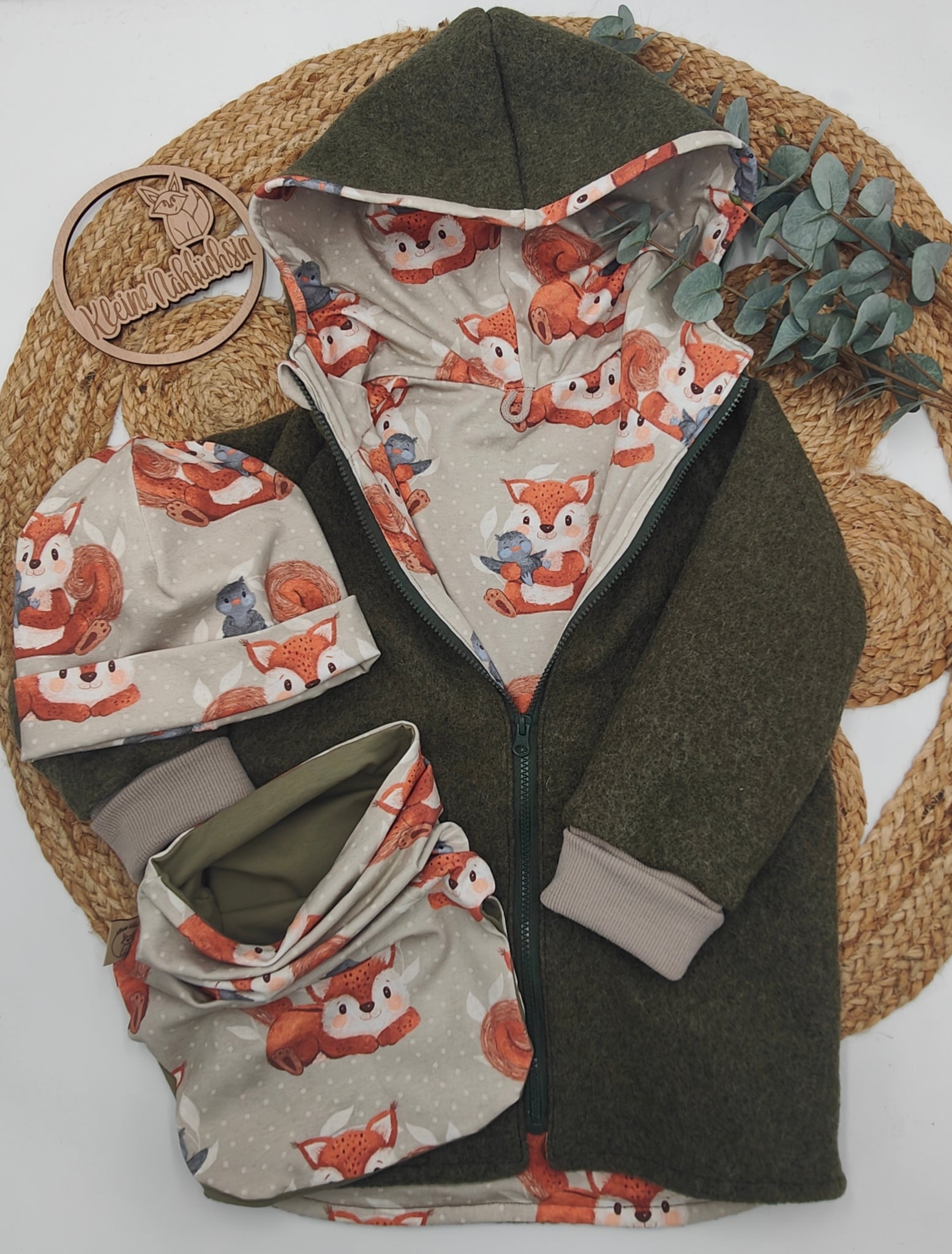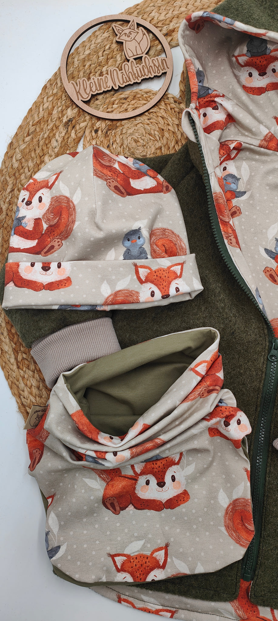 Walkmantel, Mitwachsbündchen, runde Kapuze + BIO Wollbündchen + GRATIS Jerseymütze + XXL-LOOP